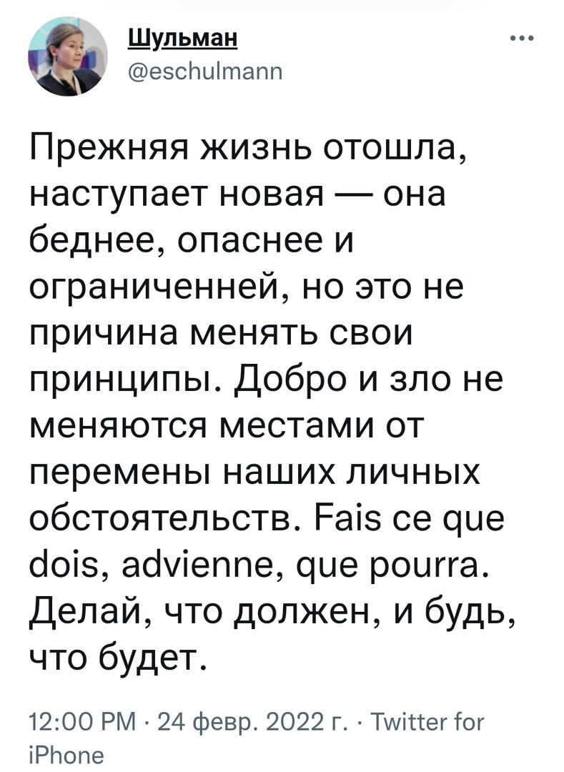 Повторюсь, если бы она не работала на 1 канале все эти годы (а Россия 8 лет уже негласно войну ведет, где ее мама живет), то безусловно, была бы героем новой России. А так, я ей не верю.