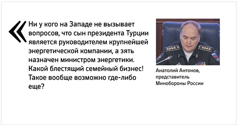 Президент Турции Реджеп Тайип Эрдоган заявил, что обладает доказательствами того, что Россия причастна к торговле нефтью с экстремистской организацией «Исламское государство» (ИГ). «У нас на руках есть доказательства. И мы предъявим их всему миру», — сказал турецкий лидер.