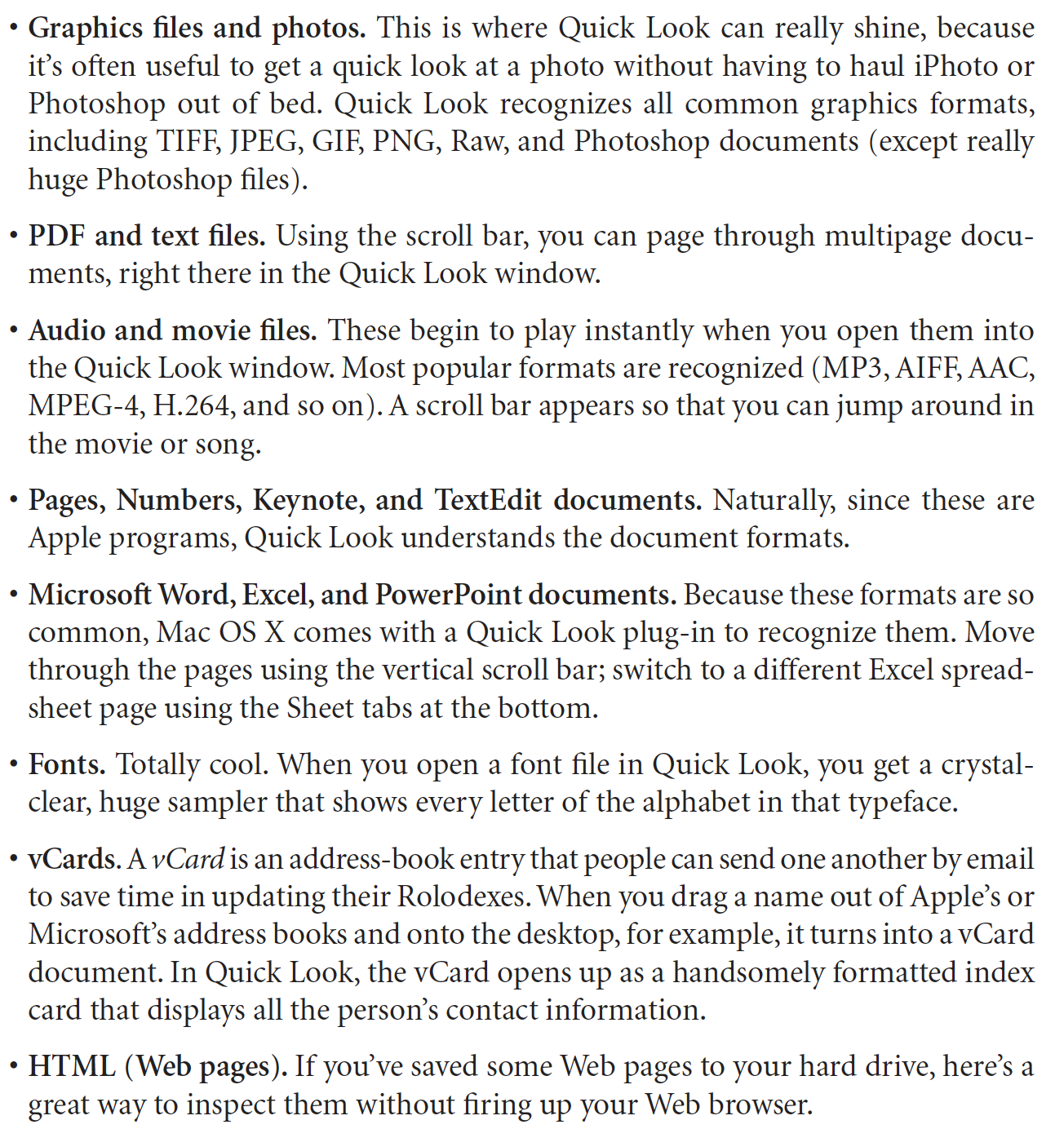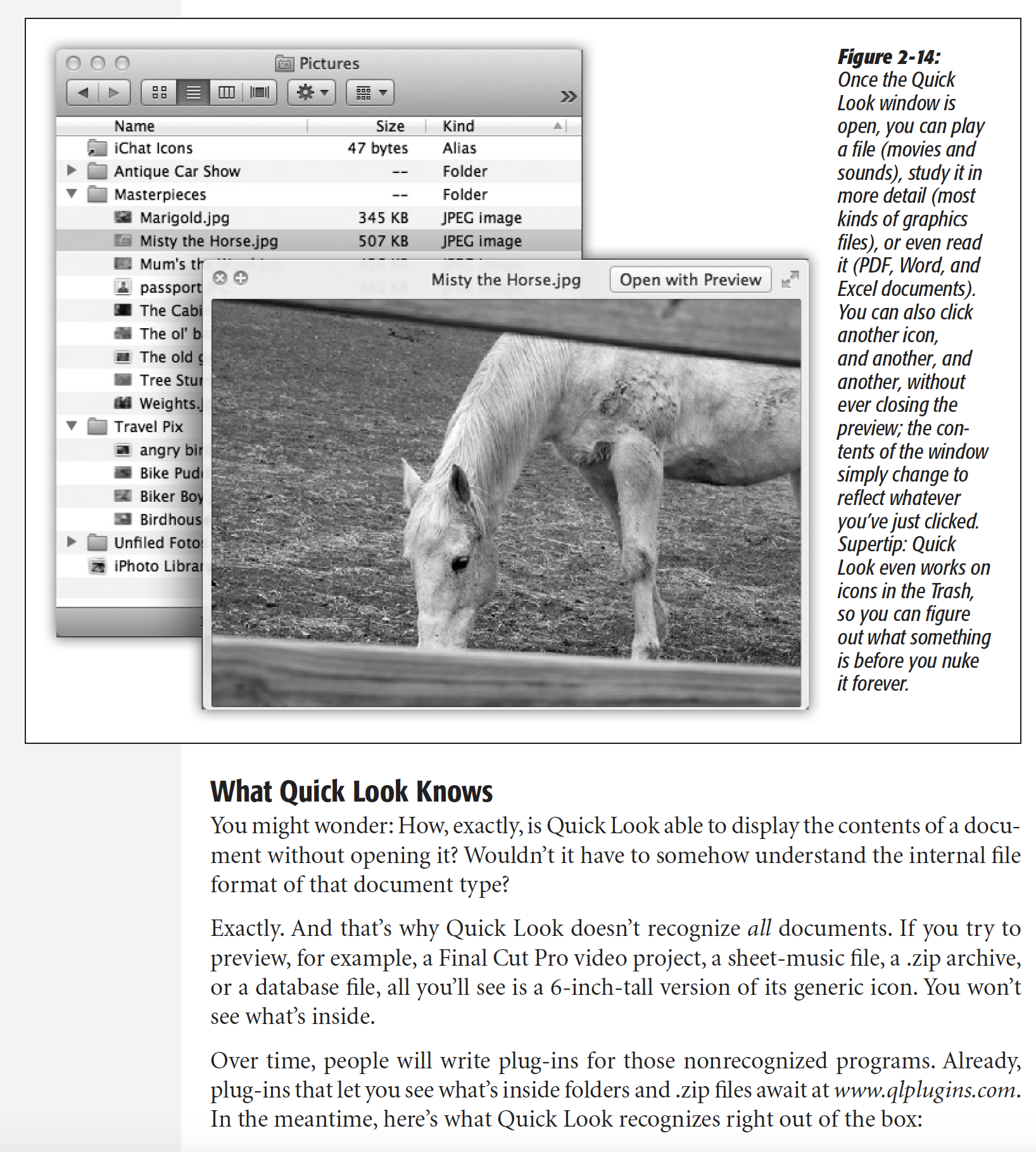 Quick Look - вам это чем-либо говорит? Прочтите инструкцию, не сочтите за труд. Виндоус вы ведь не на интуитивном уровне осваивали (хотя вам может казаться, что вы до всего своим умом дошли) - либо кто-то вас обучал, либо вы читали инструкции.