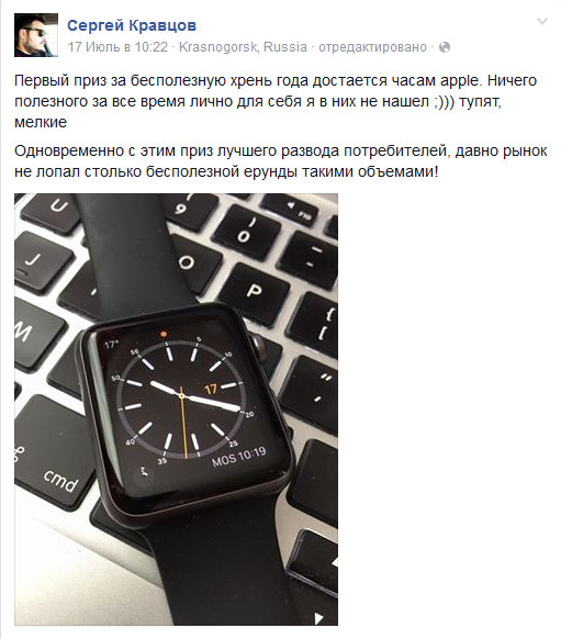 Важно то, что вот это пишет эпломан! Серега работает на маке, у него айфон и все такое. Неделю он тестировал Apple Watch. И вот развернутый обзор.