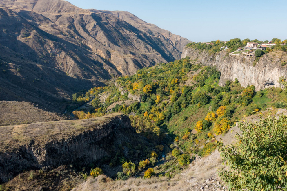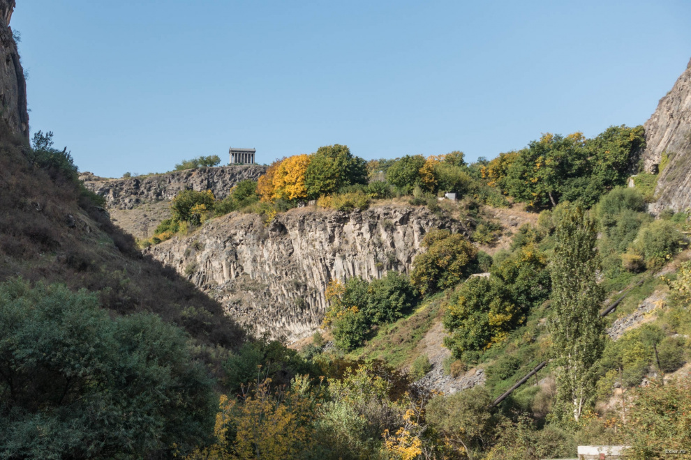 Храм Гарни, посвященный древнеармянскому богу Солнца Митру (Михру) - единственный сохранившийся во всем регионе памятник римской эпохи. Ну и как мы могли на него не взглянуть? Тем более что храм, как нам сказали, стоит в красивейшем ущелье.