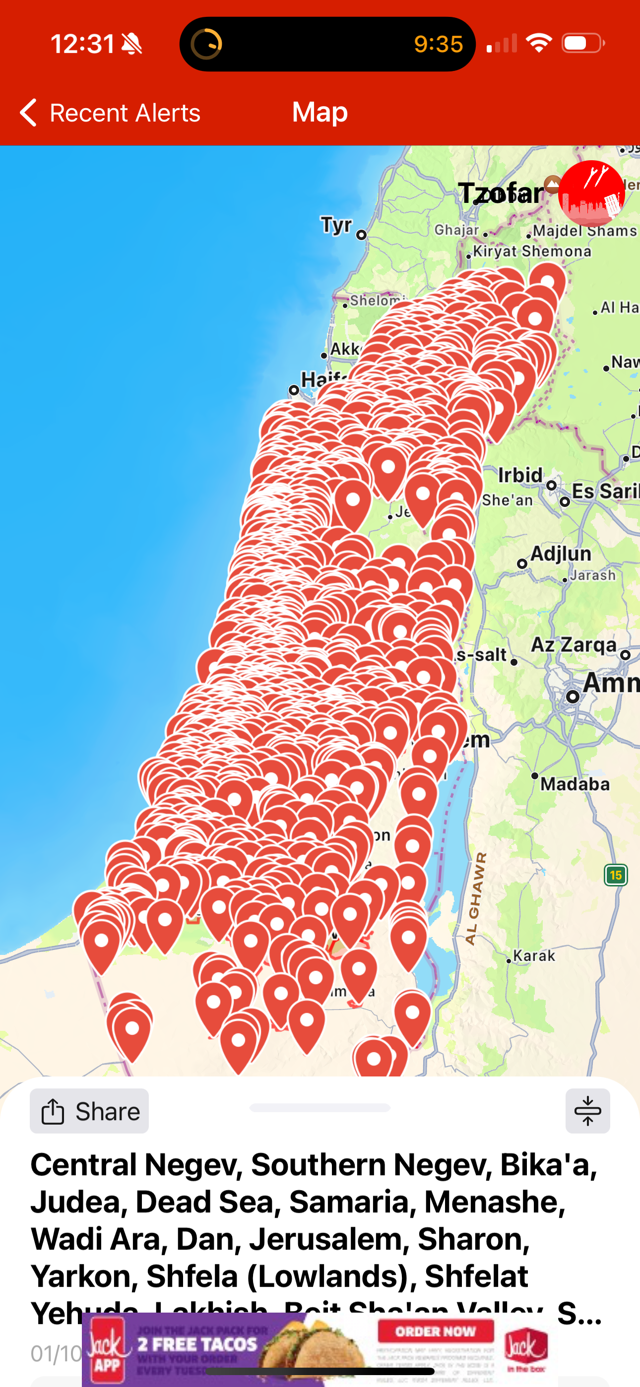 Иран выпустил по Израилю более 250 баллистических ракет. Большинство из них сбиты системой Хец за пределами Израиля. В основном над Иорданией. Все сообщения о якобы попадании ракеты пока не проверены и требуют подтверждения. Аэропорт Бен-Гурион временно прекратил работу и самолёты развернули на Ларнаку.