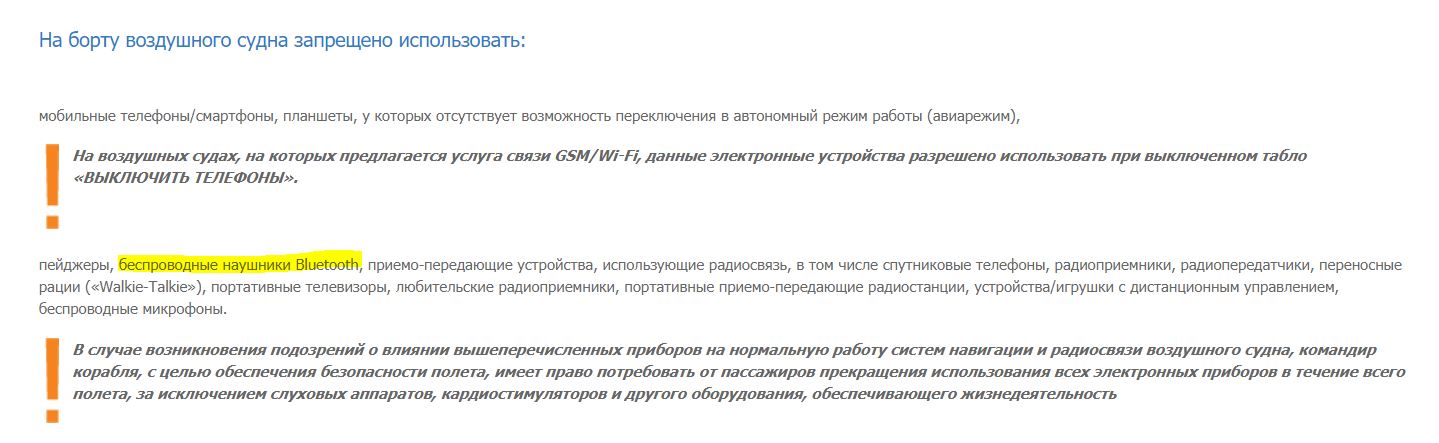 вы в курсе что использование bluetooth наушников на борту самолета запрещено многими авиакомпаниями
