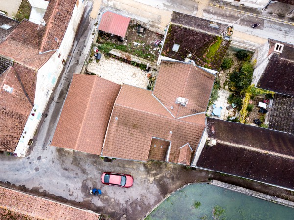 И вот он сверху (моя "Октавия" стоит перед входом). Справа от машины - ров с водой, который окружает замок.