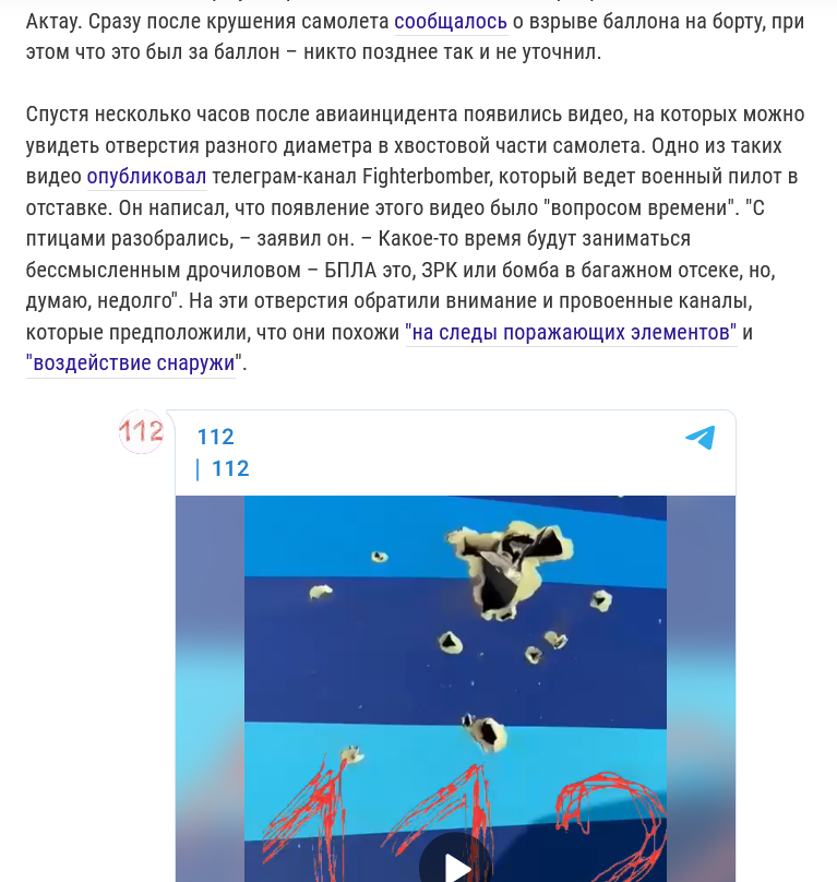 То что в Грозном джигиты в азарте влепили по самолету (по моему мнению чем то ствольным) сомнений не вызывает.