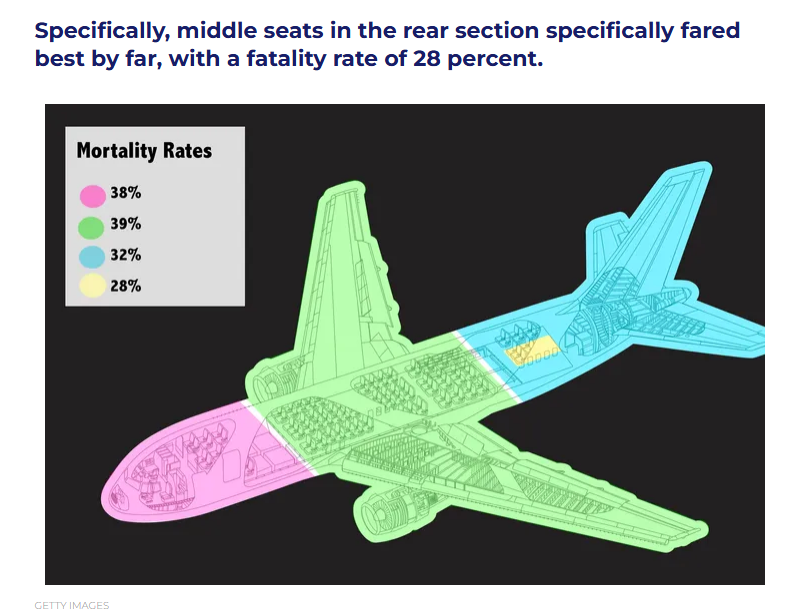 Беру место, где наименьшая вероятность быть около семей с детишками (они статистически чаще сзади), около окна, и можно ноги выкинуть. Tакже грееет душу, что первый класс "всё" на миллисекунду раньше меня.