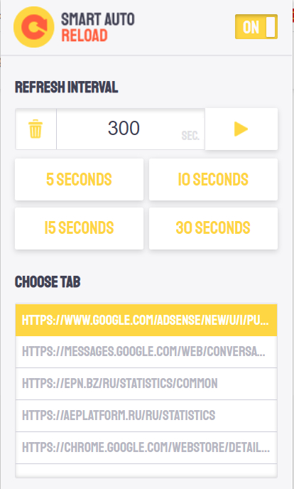 Мне в течение дня приходится поглядывать на самую разную меняющуюся статистику, которая выводится в разных вкладках специального браузера (у меня основной браузер - FireFox, а Chrome используется как раз для статистики). Ну и когда я захожу посмотреть соответствующие вкладки, то их приходится перезагружать, чтобы обновить данные. Так вот, не прошло и десяти лет, как до Холмса дошло, что наверняка должен быть какой-нибудь плагин, который умеет перезагружать определенные вкладки с заданной частотой.