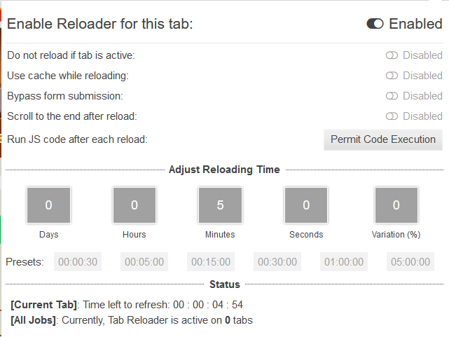 Автоматическая перезагрузка вкладки