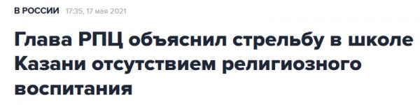 Глава РПЦ объяснил стрельбу в школе отсутствием религиозного воспитания.