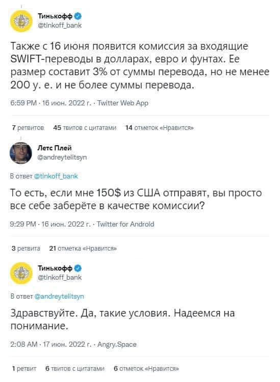 Угу. По типу "одумавшегося" Тинькова, который для сумм на валютном счете меньше 10 тыс. у.е. отменил ранее объявленную отрицательную ставку 1% в месяц, но зато для swift переводов ввел минимальный порог в 20 тыс. у.е.