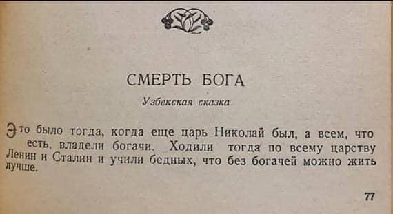 Таким образом, как мы можем заключить по свидетельству товарища Заратустры, переданном со слов товарища Ницше, вышеописанная печальная история с Богом произошла, когда товарищи Ленин (род. 1870) и Сталин (род. 1878) были еще довольно молоды.
