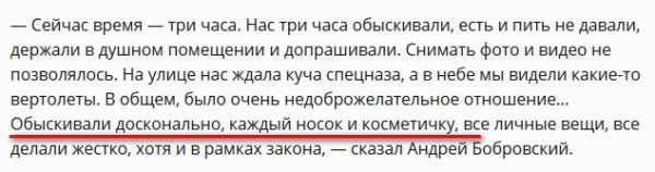 они рылись в наших косметичках. пра-а-а-цивные. и еще хотели забрать помаду. мы просили чтобы нас наказали, отшлепали. но нас просто не пустили в Польшу. - Бобровский