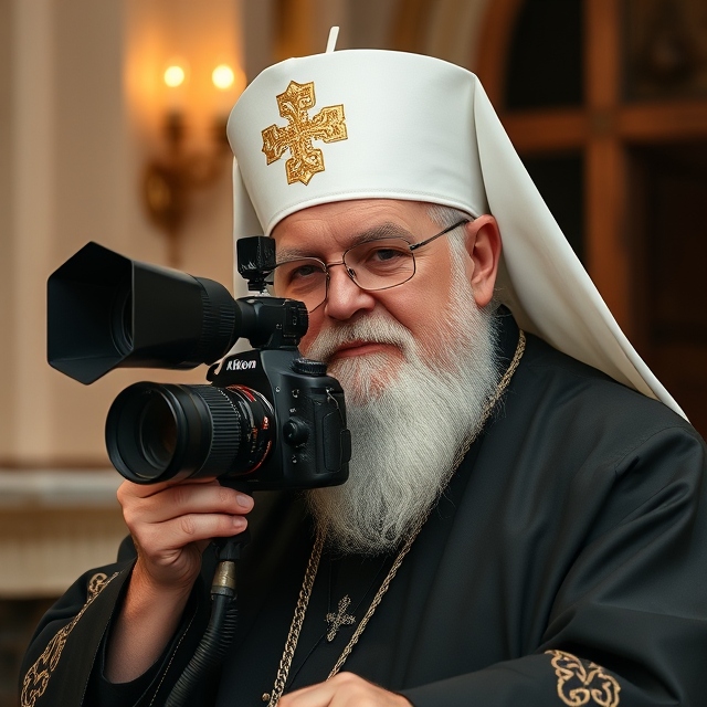 То же самое, но посредством удара по голове образом Патриарха Никона.