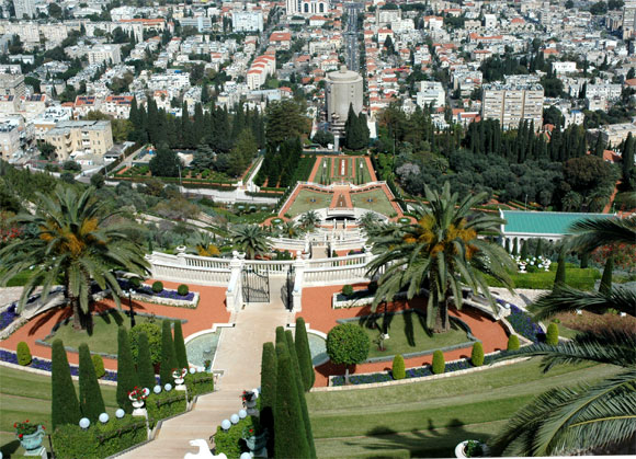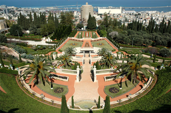 Уточнение: это не храм, а усыпальница, в которой похоронен пророк Баб и сын Бахауллы Абдул-Баха. Место святое, там молятся паломники, но храмы у бахаи другие. Вот здесь в Википедии: http://ru.wikipedia.org/wiki/Бахаи#.D0.94.D0.BE.D0.BC.D0.B0_.D0.BF.D0.BE.D0.BA.D0.BB.D0.BE.D0.BD.D0.B5.D0.BD.D0.B8.D1.8F.C2.A0.E2.80.94_.D1.85.D1.80.D0.B0.D0.BC.D1.8B_.D0.B1.D0.B0.D1.85.D0.B0.D0.B8