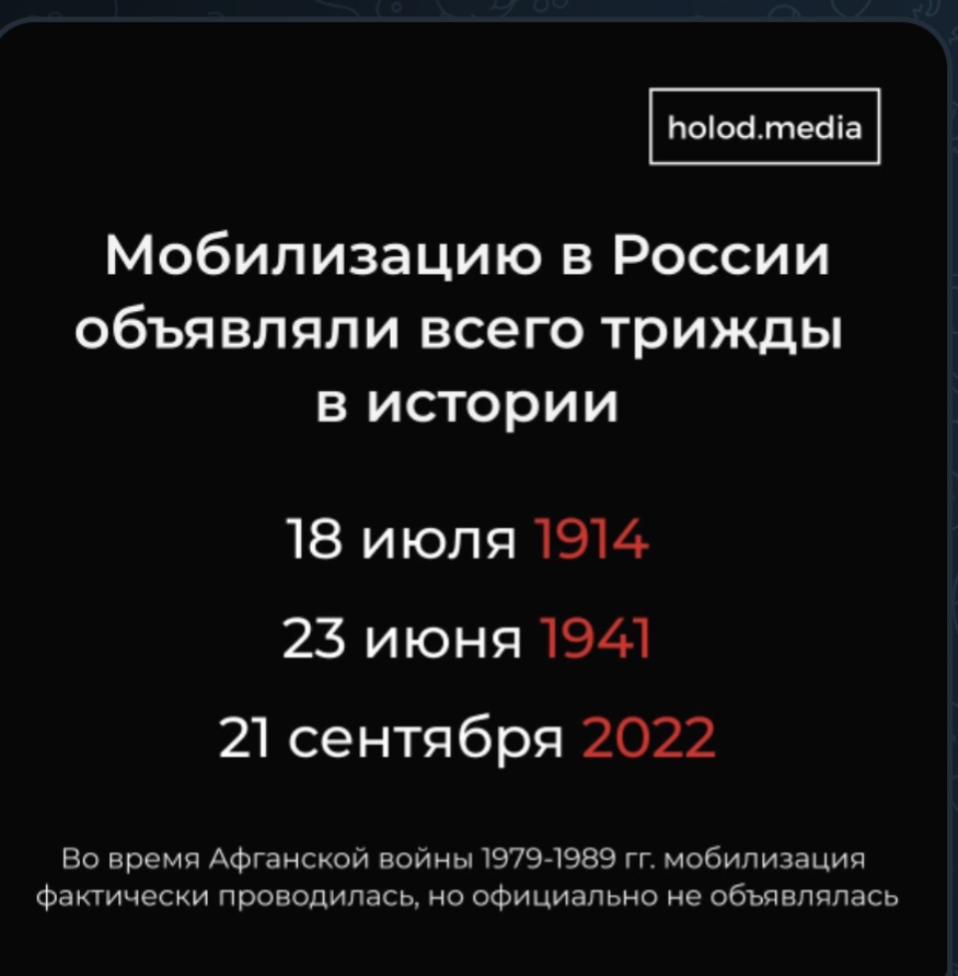 Вижу единственный плюс для пропаганды - наконец-то можно будет официально говорить "война" вместо "специальная военная операция". Поскольку не просто же так мобилизация - с НАТО пришлось воевать! Ужасные Штаты всех российских хрябрецов закидывают толпами черных солдат!