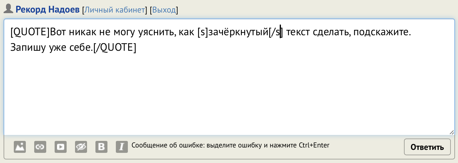 Вот никак не могу уяснить, как зачёркнутый текст сделать, подскажите. Запишу уже себе.