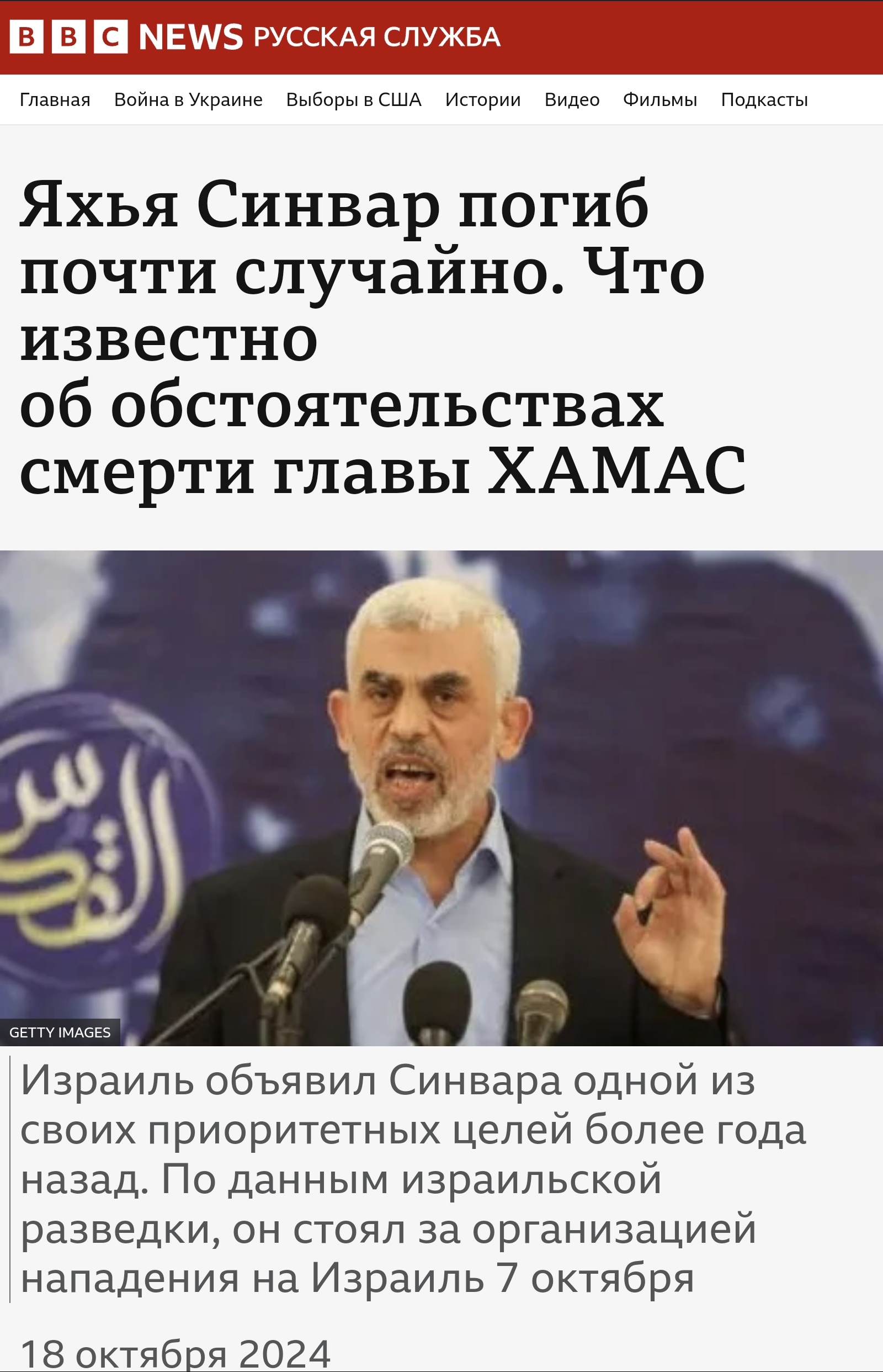 Точнее, ленточка есть, но она появилась, когда Израиль начал операцию против Хамас. То есть, стал активно защищаться. Так что это траур не по Синвару конкретно, а по всему Хамас. Формально по палестинцам, но лишь формально. После 7 октября ленточки не было...