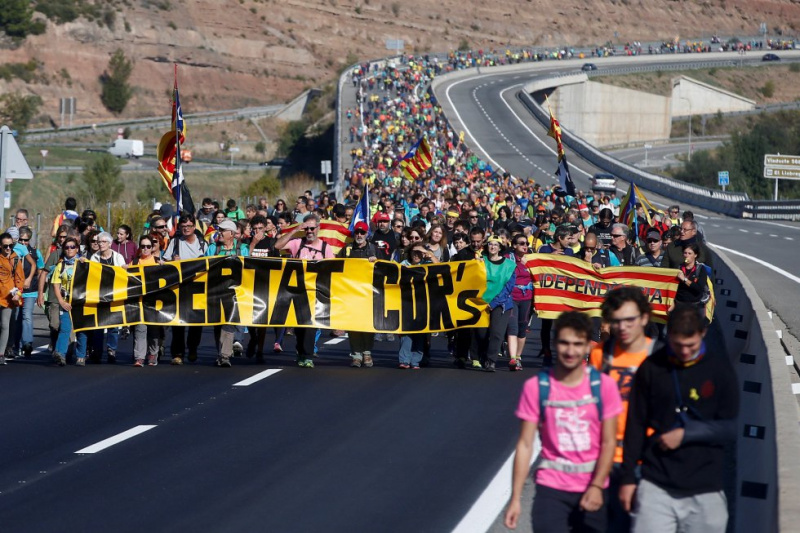Пять колонн маршей независимости перекрывают движение на двух главных дорогах Каталонии AP-7 и AP-2, а также на четырех второстепенных дорогах. Это колонна из города Берги -  EFE.
