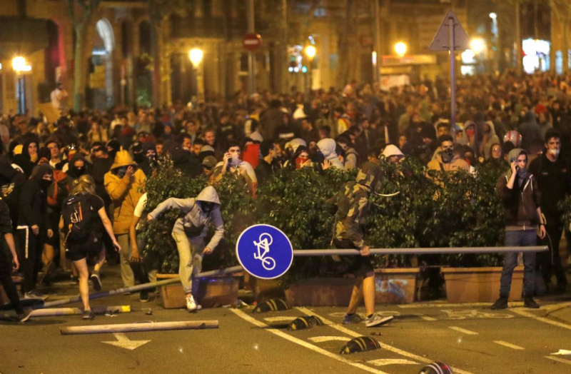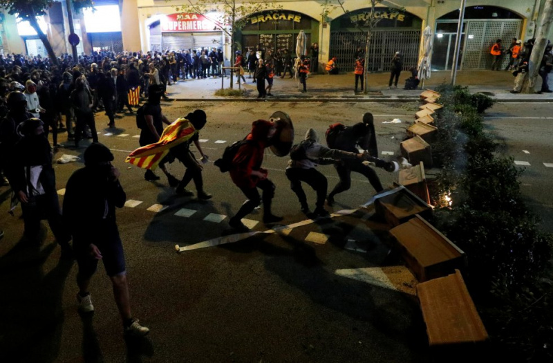 Протестующие на улицах Берселоны -  ALBERT GEA (REUTERS).