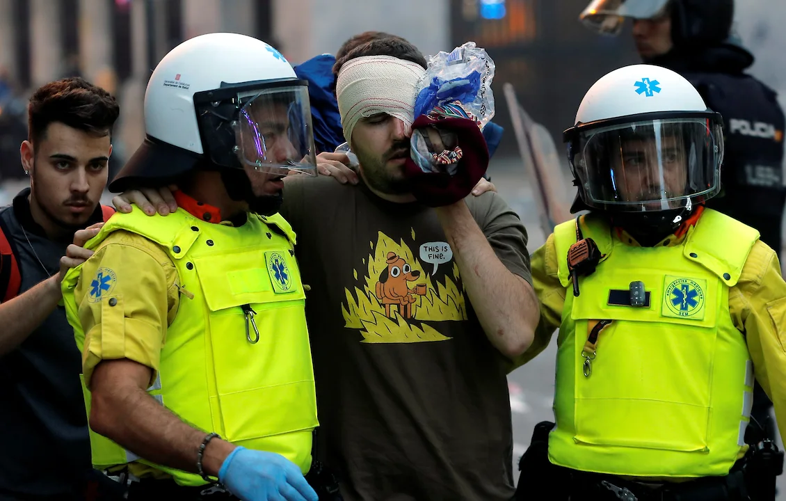 Покажите кто-нибудь Собянину, что такое настоящие уличные беспорядки. Вчера ночью в Барселоне были ожесточенные столкновения с полицией. Десятки пострадавших с той и с другой стороны. Каталонские полицейские оценивают количество участников беспорядков в 4500 человек, среди которых примерно 500, как пишут, особенно агрессивны.