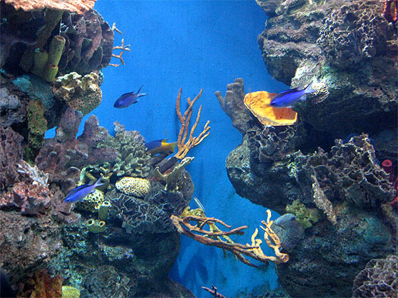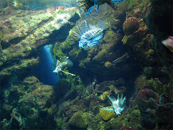 Симпатичное заведение. Только народу многовато, да и хочется убивать туристов из серии "А сфотай меня вот с этой рыбкой". Эта дура будет стоять рядом с аквариумом, отгонять народ, а ее муж или хахаль будет полчаса "ловить кадр". И это они проделывают с каждым аквариумом всего заведения. Причем таких недоумков - каждая пятая компания. Сильно портят просмотр - заколебали донельзя. Я в какой-то момент решил вместо рыбок начать фотографировать вот этих дурищ - раз уж в кадр кроме их физиономий ничего другого не попадает. Кстати, помогло. Перестали фототаться у каждого стенда, можно было рыбок рассмотреть.