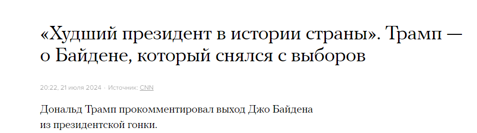 Ну, правильное решение, конечно. Но интересно, кого сейчас поставят демократы. Камала Харрис - вообще ни разу не вариант.