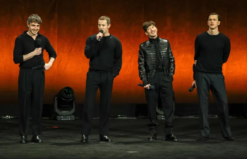 Пол Мескал, Джозеф Куинн, Бэрри Кеоган и Харрис Дикинсон на сцене CinemaCon, 31 марта 2025 года (Getty Images)