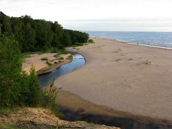 Интересное место под названием Белая дюна. Километров 40 от Риги. Там река впадает в море - красотища...