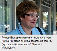 Если лучшие люди Белгорода настолько утратили чувство современности, или настолько вжились в роль, нужно срочно изобретать машину времени и отправлять их в самое среднее Средневековье. Там самое раздолье: с диаволом противуборствуют, истязают свою пожухлую плоть, и укрепляют духовную безопасность. Пока машины нет, наверное, сгодятся Афганистан и некоторые южные республики Северного Кавказа. Там им будут рады.