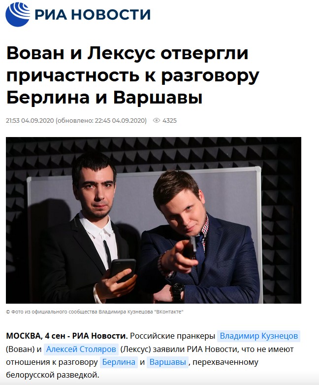 Так если бы это в первый раз. Но оно понятно, что рассчитано не на интернетовскую публику. Это все для аудитории российского ГовноТВ. А их еще и не такой шнягой кормят - ничего, жрут и нахваливают. Сегодня все таксисты в стране пассажирам начнут говорить: "Слющай, слищал как из Варшавы с Берлином пиндосы подговаривались сказать, что Навальнаво атравили"?
