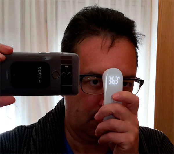 Мне поначалу где-то раз пять пришлось потренироваться, но потом, когда поймал нужное положение устройства и расстояние до переносицы - стал четко определять с первого-второго раза. Причем, что интересно, при нескольких замерах показания плавали максимум на 0,1 градус.