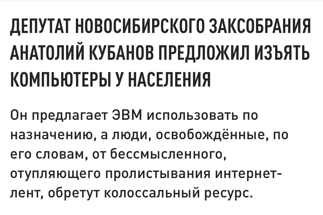 Но можно начать с процессоров, чтобы все сдавали процессоры на нужды войны. Из стиралок, микроволновок, автомобилей и т.д.