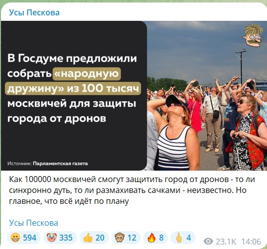 Я знал, что уж кто-кто, а по-настоящему народные избранники найдут способ, как защитить Рассею-матушку от дронов, уж раз МО РФ, спецслужбы и так далее этого сделать не могут, а могу только так подавлять настроение дронов, что они попадают точно в цель.