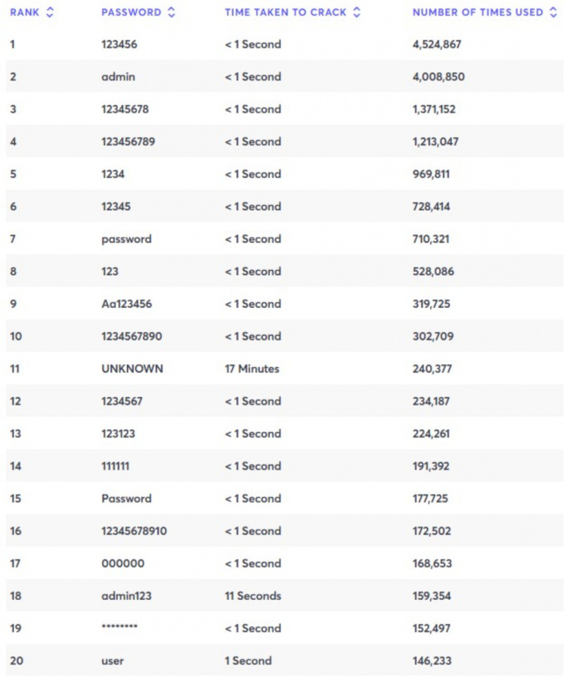 XXI век на дворе. Но сколько ни объясняй людям, что использование пароля "password123" или "123456" - это все равно что не использовать никакой пароль, тем не менее у массы пользователей пароли взламываются менее чем за секунду.