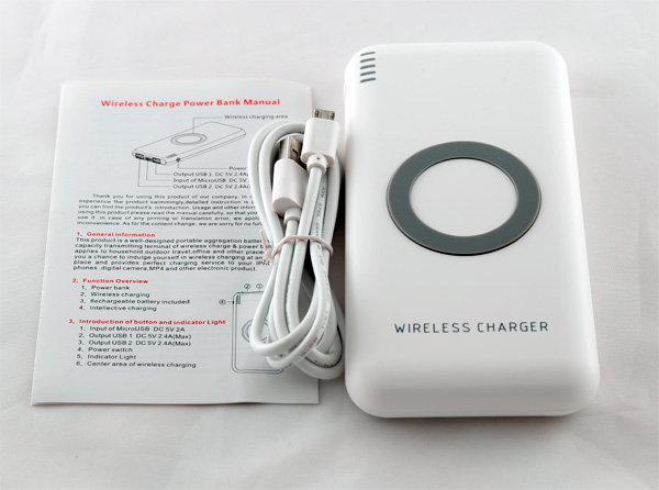 На Али наткнулся вот на такую штуку - беспроводной внешний аккумулятор. На сайте написано, что у него емкость 6000 мАч, но на самом аккумуляторе указано 8000 мАч.