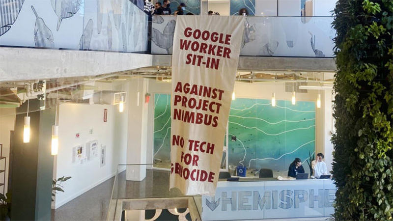 Во вторник несколько десятков сотрудников Google в Нью-Йорке и Калифорнии в 14 часов вошли в офисы компании и заявили, что будут там оставаться до тех пор, пока компания не выполнит их требование отказаться от контракта стоимостью 1,2 миллиарда долларов, который она заключила с Amazon на предоставление облачных услуг и центров обработки данных израильскому правительству. Другие протестующие митинговали у офисов компании в Нью-Йорке, Саннивейле и Сиэтле.