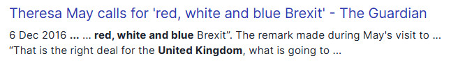 May dismissed any suggestion that the government was using such language. “I’m interested in all these terms that have been identified – hard Brexit, soft Brexit, black Brexit, white Brexit, grey Brexit – and actually what we should be looking for is a red, white and blue Brexit,” she told reporters during her two-day trip to the Gulf Co-operation Council (GCC) in Bahrain.