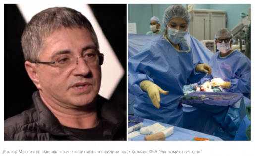 Мясников работал и учился в США четыре года до возвращения в Россию в 2000 году. Доктор называет американские госпитали "филиалами ада", заявив, что работал в одном из крупных "госпиталей-монстров" Нью-Йорка. Каждый из них, по словам врача, переполнен до предела, а в приемном покое и палатах периодически раздается стрельба.