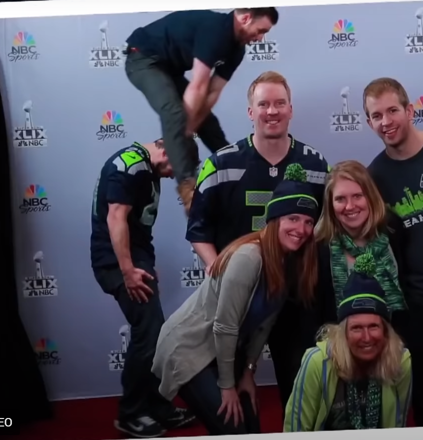 2) люди фоткаются и не подозревают, что попали на съёмки передачи: известные актеры развлекаются тем, что вскакивают внезапно тем в кадр
