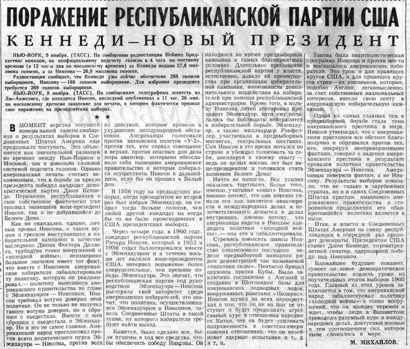 Статья  в подвале 1-й полосы "Известий", московский вечерний выпуск 9 ноября 1960 года. Via.
