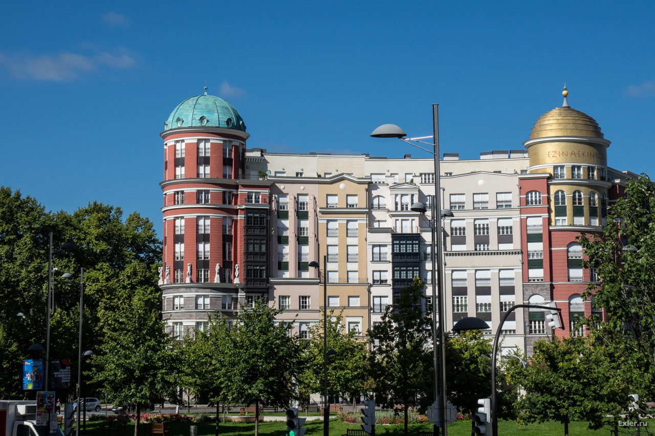 Рядом с нашим отелем находилось вот такое интереснейшее здание. Кажется, что его сначала опутали стальными тросами, потом вставили в здание трубочку и надули.