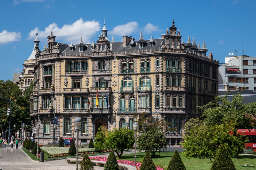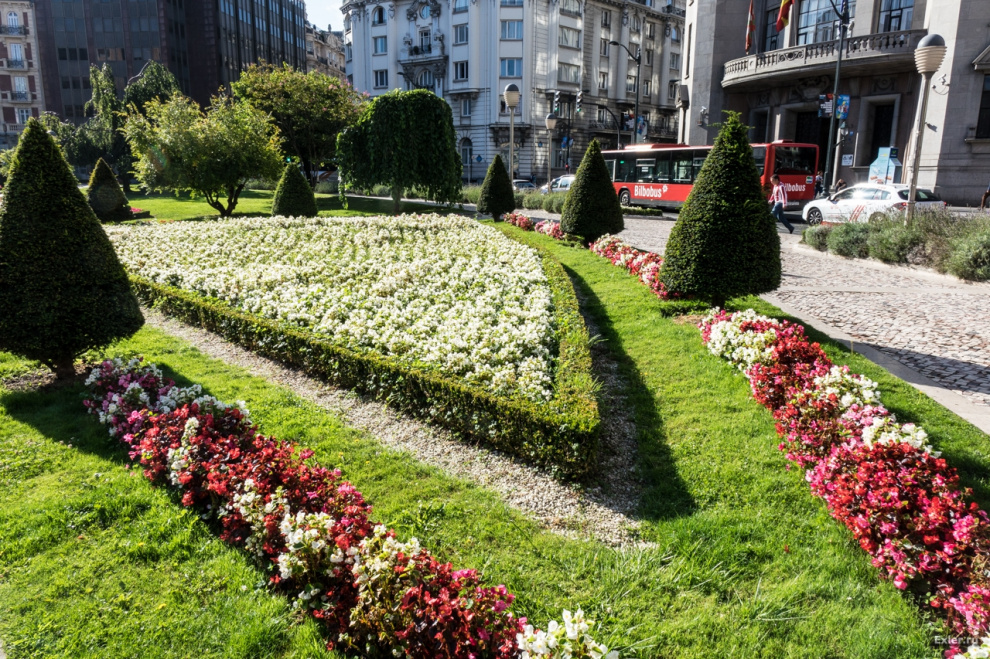 Площадь Federico Moyua. Ее обступают очень красивые здания, а в середине площади - здоровенная клумба.