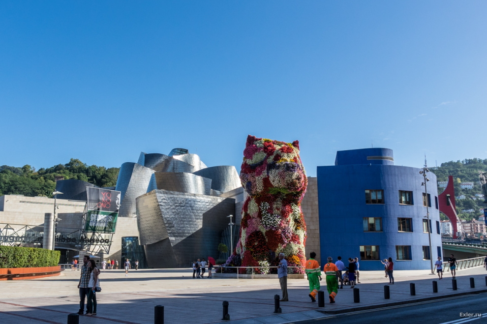 А вот и знаменитый Музей современного искуства Гуггенхайма. Здание музея спроектировано американско-канадским архитектором Фрэнком Гери. Музей был открыт для публики в 1997 году и сразу стал одной из известнейших достопримечательностей всей Испании.