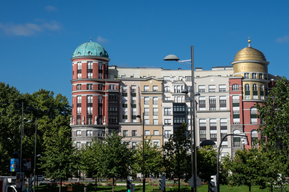 Интересный момент - сохраненный фасад старинного здания. А что, хорошая мысль.