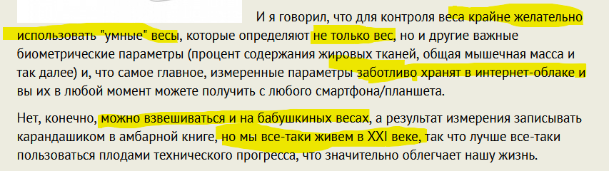 Традиционно с Нового Года я начал Новую Жизнь. В этом году в новой жизни появилось интервальное голодание. Взвешиваюсь один или два раза в неделю. Смотрю только на динамику. Вес снижается, процент жира снижается, ИМТ снижается, все довольны и счастливы. Возможно, для счастья хватило бы и одного показателя (веса), но видеть, как приходят в норму сразу несколько показателей мне приятнее.