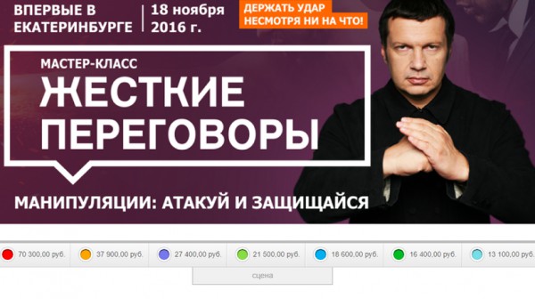 А если вы действительно хотите узнать, какие потрясающие откровения Вова выдает на таких мастер-классах, то вот вам прелестный отчет главреда сайта 66.ru Дмитрия Шлыкова, который сходил на Вовино бизнес-шоу и не поленился записать выдержки из этой мудрости веков - статья называется "Владимир Соловьев как апогей всеобщей паники, или Почему полные залы на бизнес-тренингах — это очень плохо".