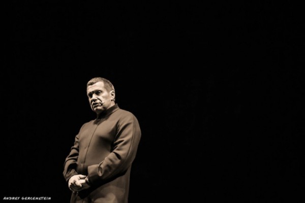 Ну, что Вова Соловьев ездит по стране с так называемыми "творческими вечерами" - я знал: мне как-то кинули ссылку на ролик с одним таким вечером и это все смотрелось невероятно забавно. Суровый Вова со сдвинутыми бровями и физиономией пламенного борца-революционера, одетый во френч то ли под Товарища Сталина, то ли под Доктора Зло, вещающий на политические темы, периодически то громогласно взрыкивающий, то взвизгивающий - словом, делающий то, что он по какому-то странному недоразумению совершенно искренне считает "актерской игрой". Я прям даже вживую бы сходил на такое представление, честное слово, это очень смешно.