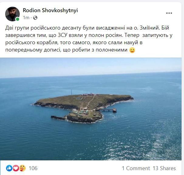 Пока известно, что россияне захватили остров Змеиный (небольшой островок в Черном море, где была погранзастава) .