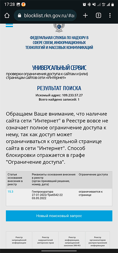 Сегодня в России из нескольких мест сайт Exler.ru уже не открывался. В списке заблокированных Роскомговном доменов его пока нет, а в списке IP-адресов уже появился, так что явно заблокировали, только не везде еще разошлось. Оно, конечно же, было вполне ожидаемо. Ну и некоторым образом даже лестно - попал в хорошую компанию.