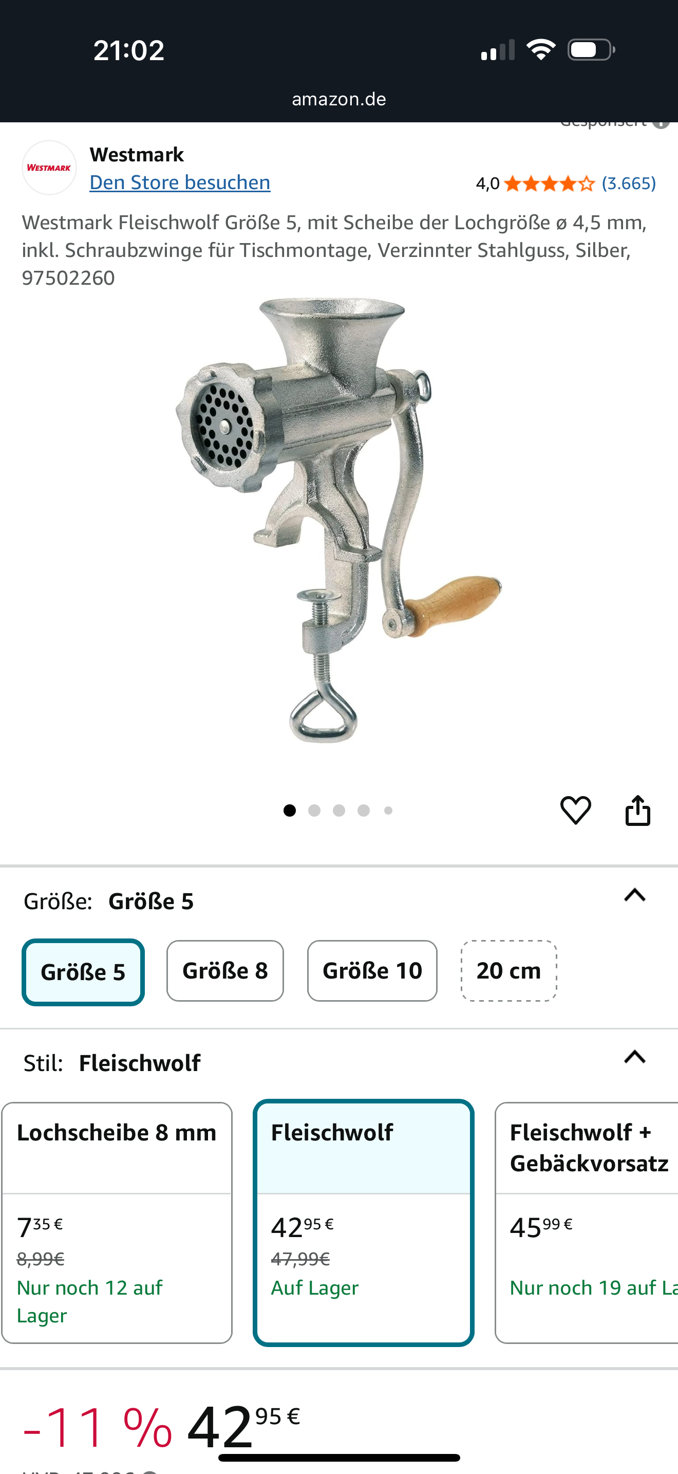 Вот я и заказал "размер номер 5", не захотела фарш делать.
